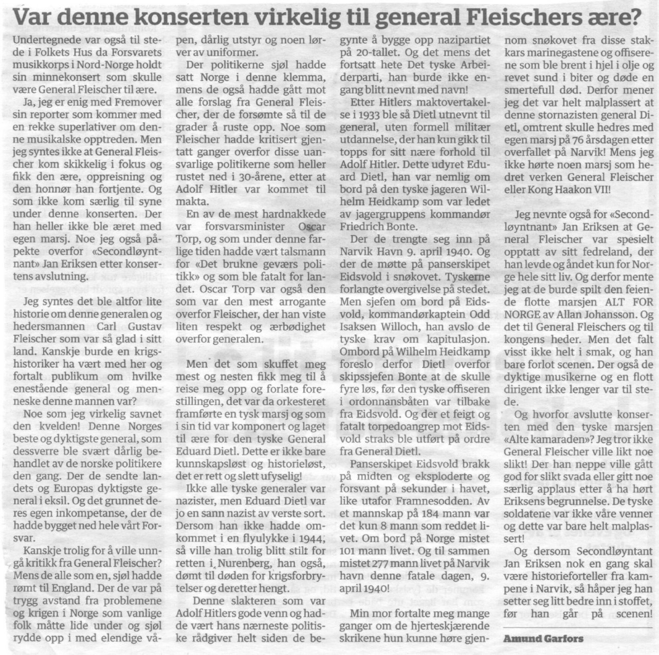 General Carl G Fleischer I Narvik holdt de en minnestund over General Fleischer etter krigsutbruddet