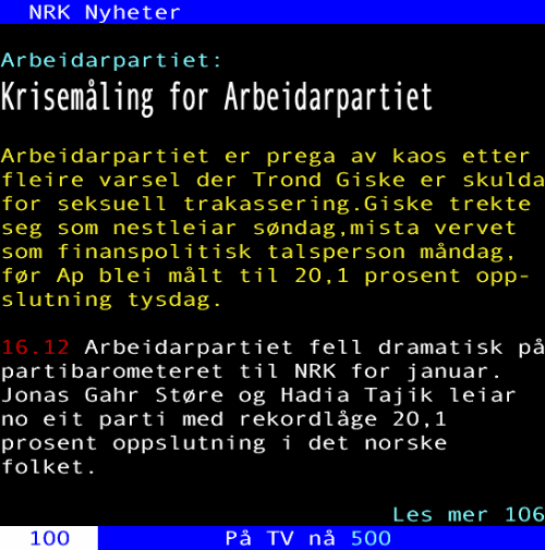 Merk dere nøye hva NRK skriver i txt tv mld over her, nemlig 20,1