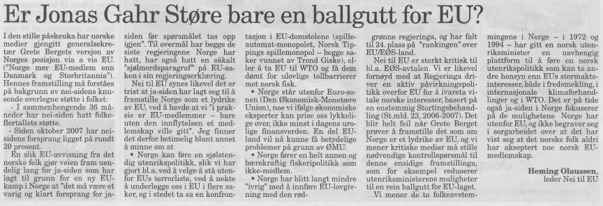 Jonas G. Støre en ballgutt for EU?
